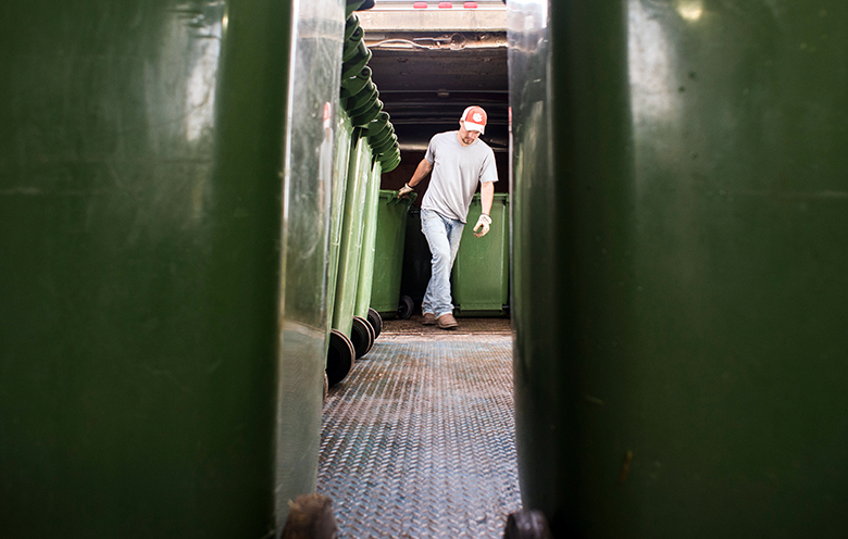 All Ohio University compost bins are power-washed with recycled rainwater before being returned to the dining halls.